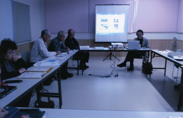 平成27年度より月例会の方法を変更して連絡事項の後、前月審査結果の作品をスクリーンにて表示して見やすいようにしました。