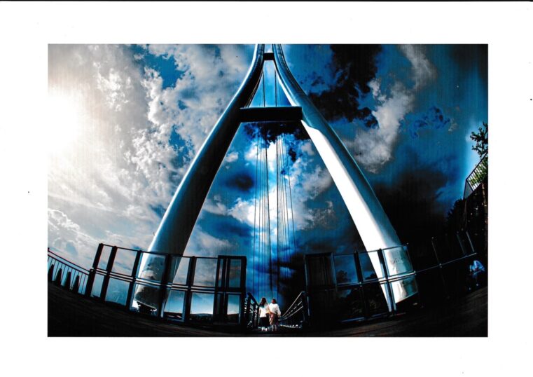 超広角レンズの使い方がうまい作品である。大きな鳥居の様にも見えるが、箱根山麓に架かるスカイウォークであろう。通常は横に回り込んで橋のアーチの形の美しさや、渓谷をまたぐ雄大さの方に目が行ってしまい、横からの写真が多いが、作者は敢えて正面からこの建造物の美しさや、壮大さを表現しており、他者とは一味違う視点の作品として評価出来る。又、点景人物の大きさや,位置も丁度よく、より雄大なスケール感を増幅している。右側の空のブルーはややレタッチし過ぎの感もあるが、シンメトリックな近代的風景写真と言えるであろう。