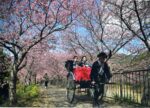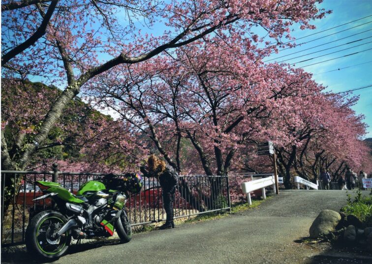 河津桜の下道を埋め尽くすたくさんの観光客の姿を伝えるテレビニュースの画面とはまるで違ったこの作品。この作品が描いているのは、そういう喧騒の中での「花見」とは一味違った落ち着きと風情を感じられものになっている。①はるばる大型バイクでやってきた青年(?)がスマホを構えている。②は人力車に乗っている夫婦、③一本の木にカメラを向ける3人。3枚に共通しているのは、これらの人物を取り囲む桜の作る空間が大切にとらえられていることである。それは人物の大きさを揃えたというより、周囲をうまく取り入れるために人物との距離を慎重に考えたことに寄るだろう。人物の向きの変化や道の捉え方の変化なども十分に意図的である。訪れた人たちの春を満喫している姿がとらえられていて、その人々の想いが作品を見る側にも気持ちよく広がって届いてくるようである。画面の隅々まで神経を行き届かせたフレーミングも心地よい。
