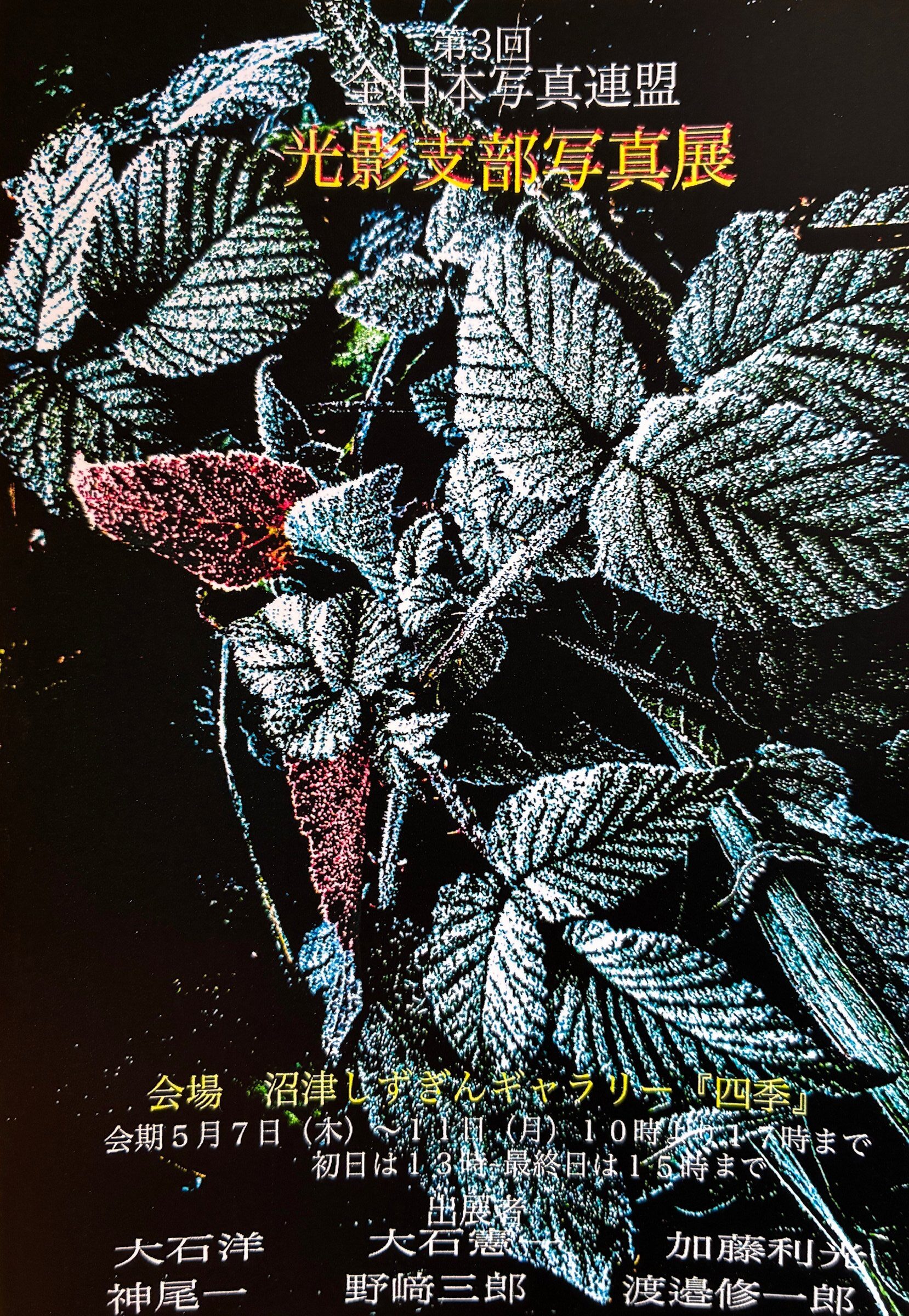 光影支部写真展のお知らせ 2026年3月27日09kenhonbu(閲覧数:116) 第3回 光影支部写真展場所: しずぎんギャラリー「四季」 沼津 沼津市大手町4-3-45 アゴラ沼津ビル8階 TEL:055-952-3401日時: 2026年5月7日(木)~5月11日(月) 10:00~17:00 初日 13:00より 最終日 15:00まで